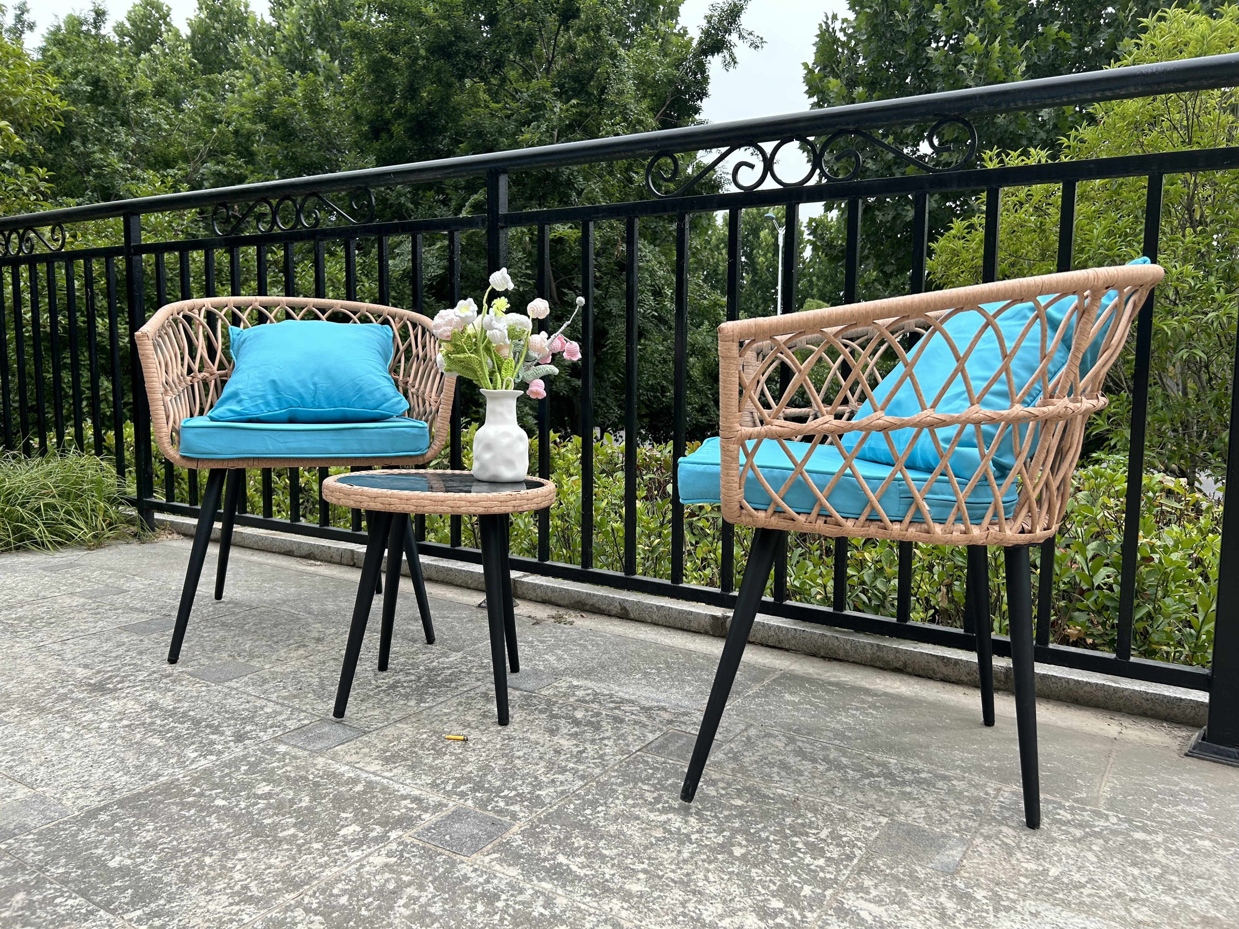 | Resaltar: | Conjuntos de sillas de mesa de café de ratán de jardín,Conjunto de sillas de mesa de café de ratán para exteriores,Conjuntos de sillas de mesa de café de ratán para patio |
