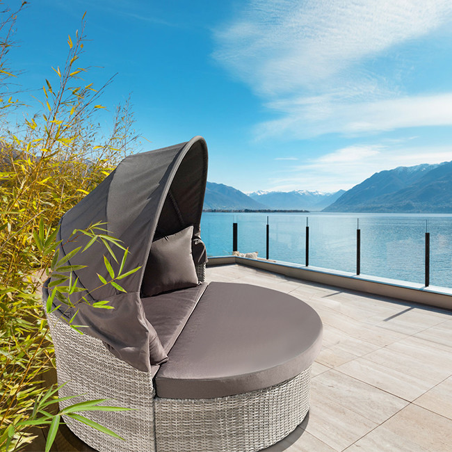 Sofá de salón hecho a mano de rattan de PE Silla de cama de día Cama reclinada Para jardín de la playa Balcón Parque sombrilla exterior Conjunto de mobiliario