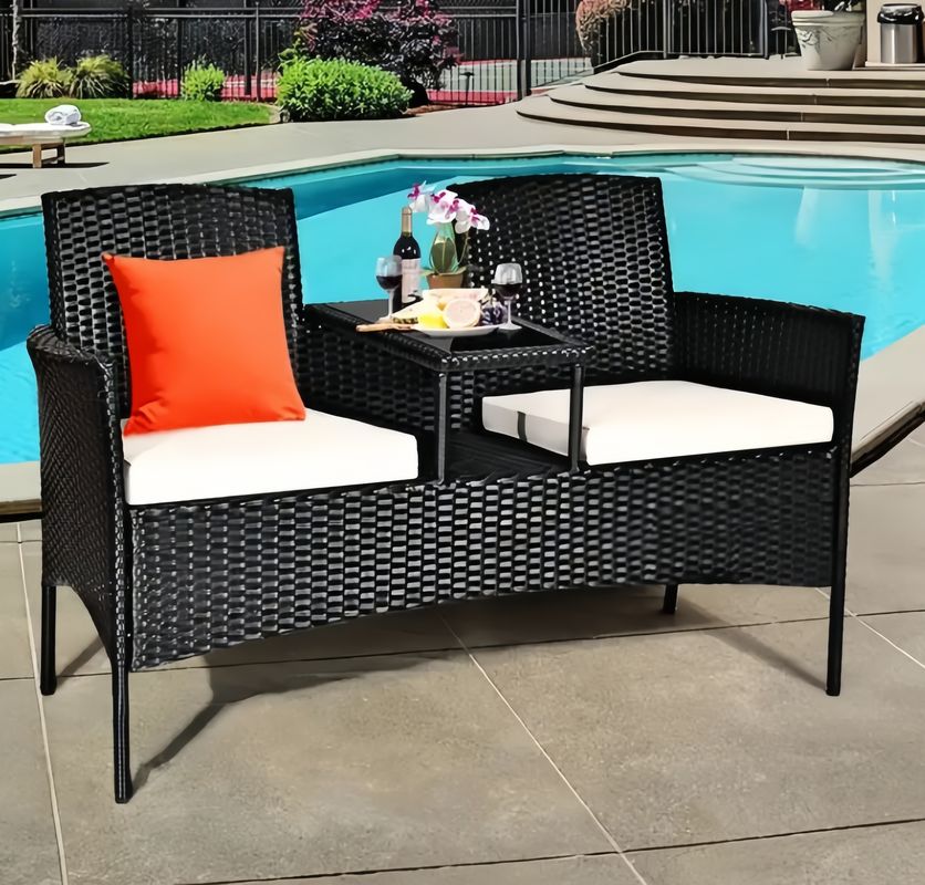 Loveseat Set Patio Wicker Conversación Set con almohadones extraíbles y sofá de mesa de café