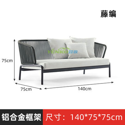 Conjunto de sofá y mesa de café al aire libre para patio, jardín, villa, terraza, silla de rattan, estilo nórdico, hotel al aire libre, muebles de rattan de ocio.